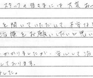 No98「通院で2時間程かかりましたが大変感謝しております」(50代 女性)