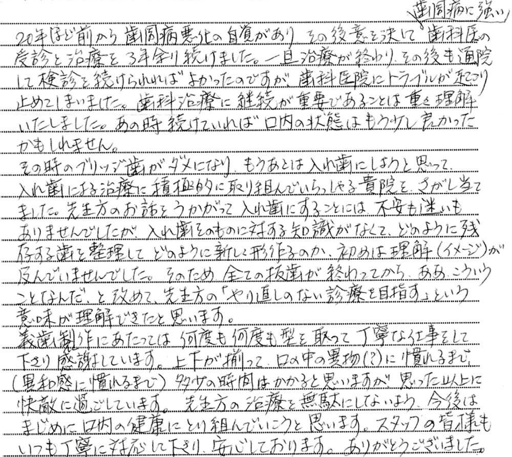 カテゴリ:当院で入れ歯治療を行った患者さまの声